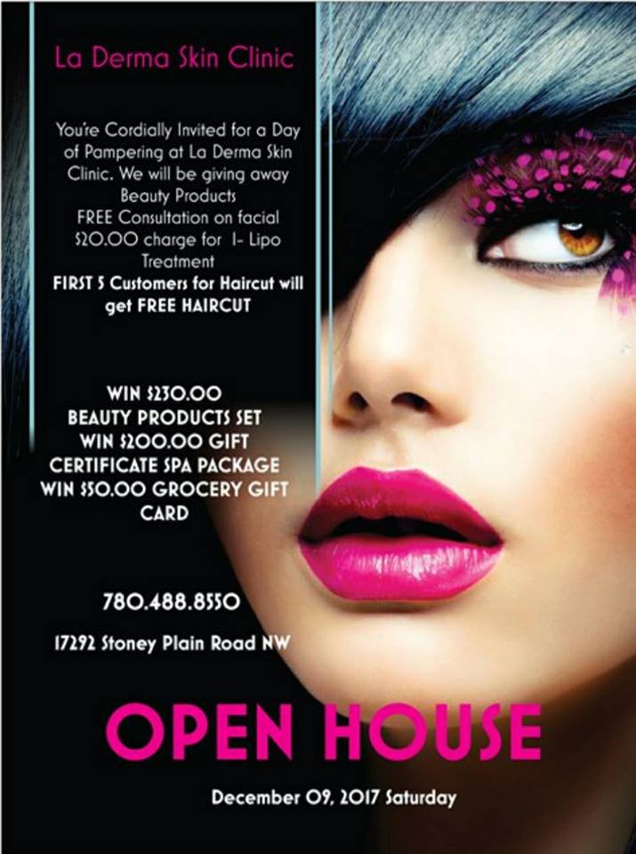 La Derma Skin Clinic will host an “Open House” on Saturday, Dec.9, 12 to 4 p.m., at 17292 Stony Plain Road NW. La Derma’s Faye Sales said there will also be raffles and other freebies to be given away. “We are inviting everyone to join us,” said Sales in a recent guesting at World FM 101.7 FM “Tahanan ng OPM” station hosted by DJ Rolan Latorre.(p.e.n.)