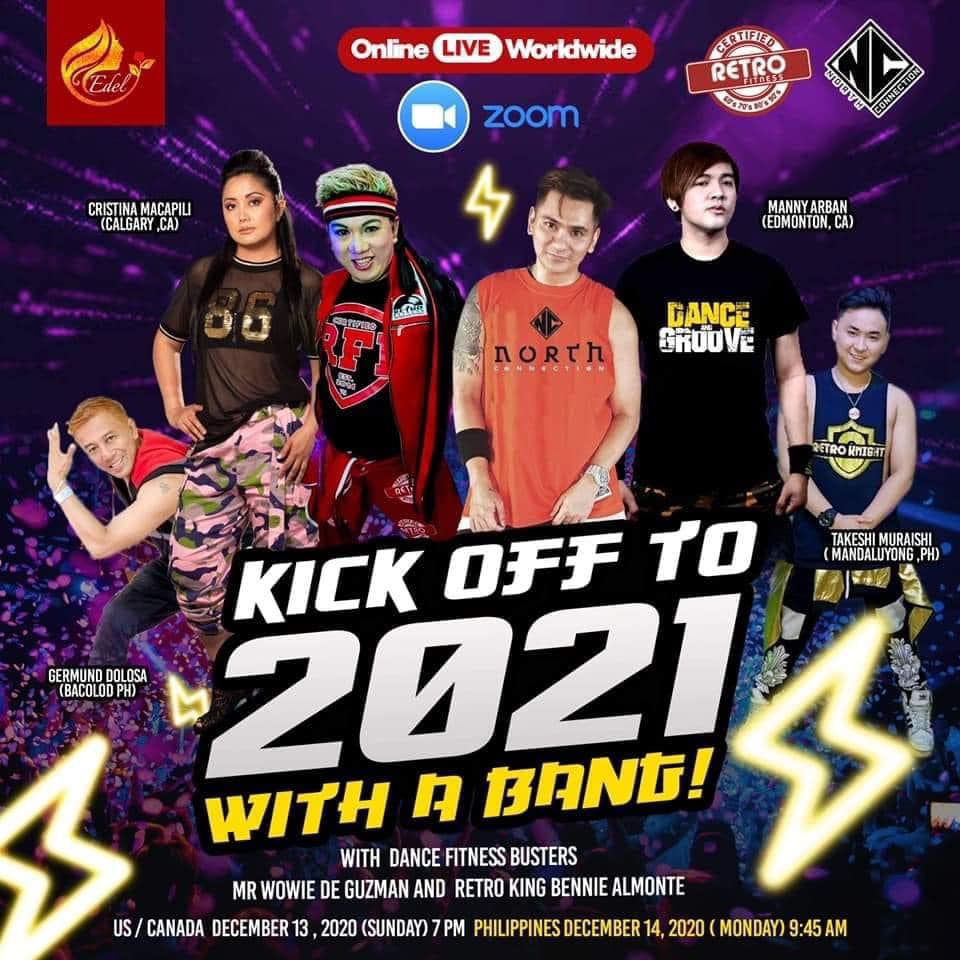 The “Kickoff to 2021 with a bang” features Dance Fitness buster Wowie de Guzman, a matinee idol in the 1990s in the Philippines, and Retro Fitness king Bennie Almonte.