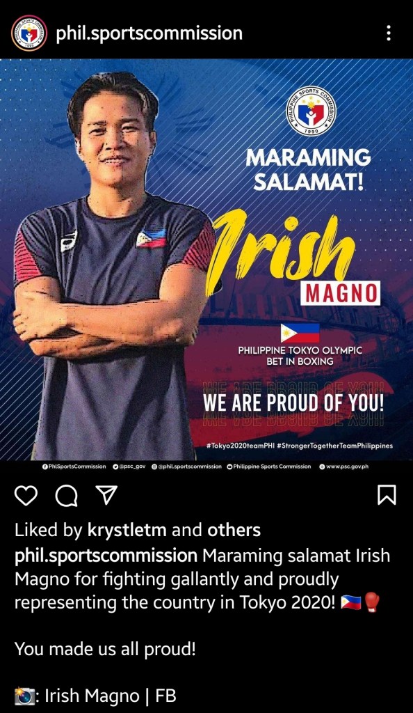 MANILA (Philippines News Agency) – Irish Magno’s stint in the Tokyo Olympics women’s flyweight boxing event came to an end on Thursday after losing to Thailand’s Jutamas Jitpong in their Round of 16 affair at the Kokugikan Arena in the Japanese capital.
