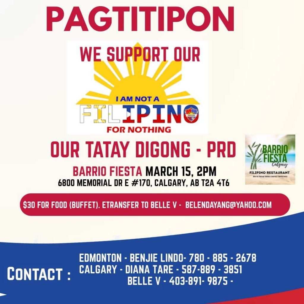 Duterte supporters are calling Duterte Volunteers Alberta Canada members to two Townhall meetings this week.